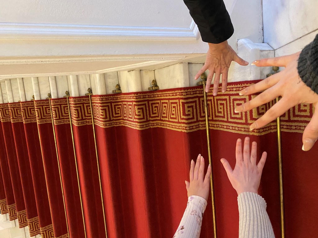 Die Fragestellungen, die mit großer Begeisterung und Ausdauer vor Ort erarbeitet wurden, waren die „Sprache der Kunst und die Kunst der Sprache“ – mit dem Fokus darauf, wie sich der Ausdruck der Kunst für die eigene Befindlichkeit widerspiegelt, woher Frauen ihre Kraft nehmen und wie sie ihre Gefühle am besten ausdrücken. Dabei wurden Künstlerinnen genauer unter die Lupe genommen. Schließlich haben wir jeweils ein Bild im Raum näher betrachtet, um die darin enthaltene Sprache und Botschaft heraus“zulesen“. Jede Teilnehmerin hatte ihr Lieblingsbild und gemeinsam sind wir über den „roten Teppich“ gegangen, damit wir den eigenen Wert für zukünftige Ausbildungen, Jobmöglichkeiten und Chancen so richtig nutzen.