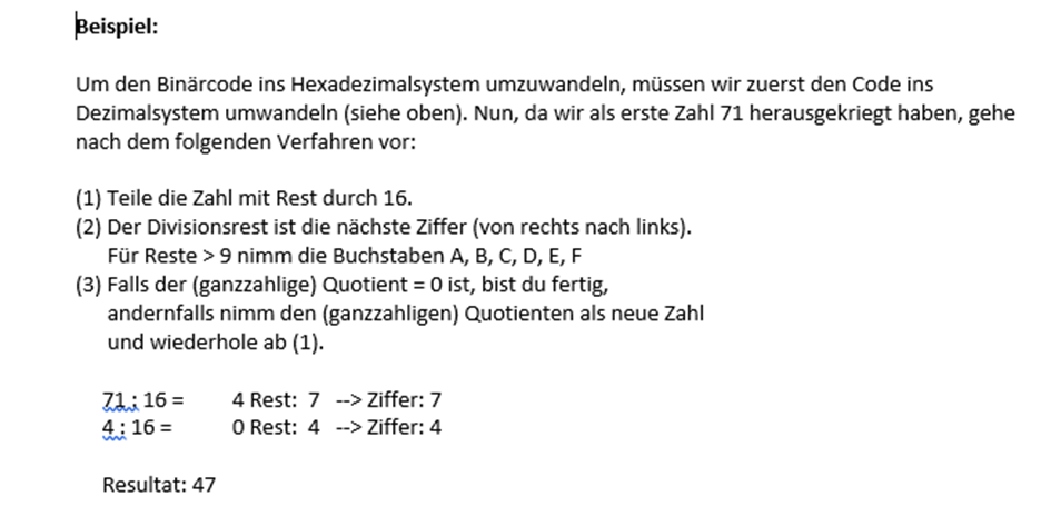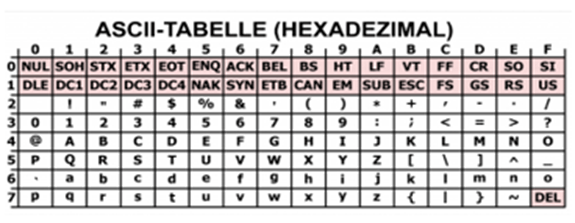 Ein Hexadezimalsystem besteht aus 16 Ziffern. 0, 1, 2, …,9 und zusätzlich die Buchstaben A, B, C, D, E und F.