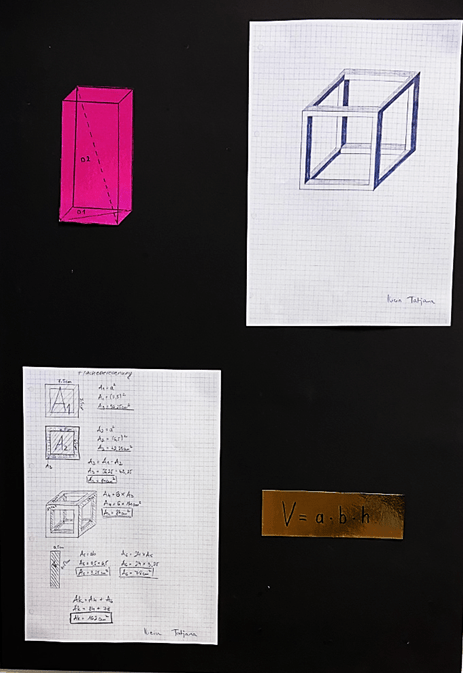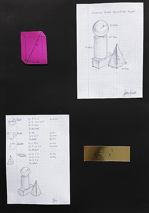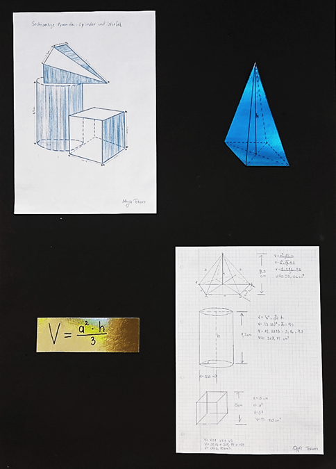 Für dieses Projekt haben wir unterschiedliche geometrische Formen zeichnerisch zusammengesetzt, die im Ganzen ungewöhnliche und aufregende Körper ergeben haben. Nun wollten wir auch herausfinden, welches Volumen unsere neu zusammengesetzten Körper besitzen. Da jeder Körper bereits seine eigene Volumenformel hat, hat es nicht viel Zeit in Anspruch genommen, diese zu berechnen und letztendlich die einzelnen Ergebnisse zu einer Summe zusammenzählen.