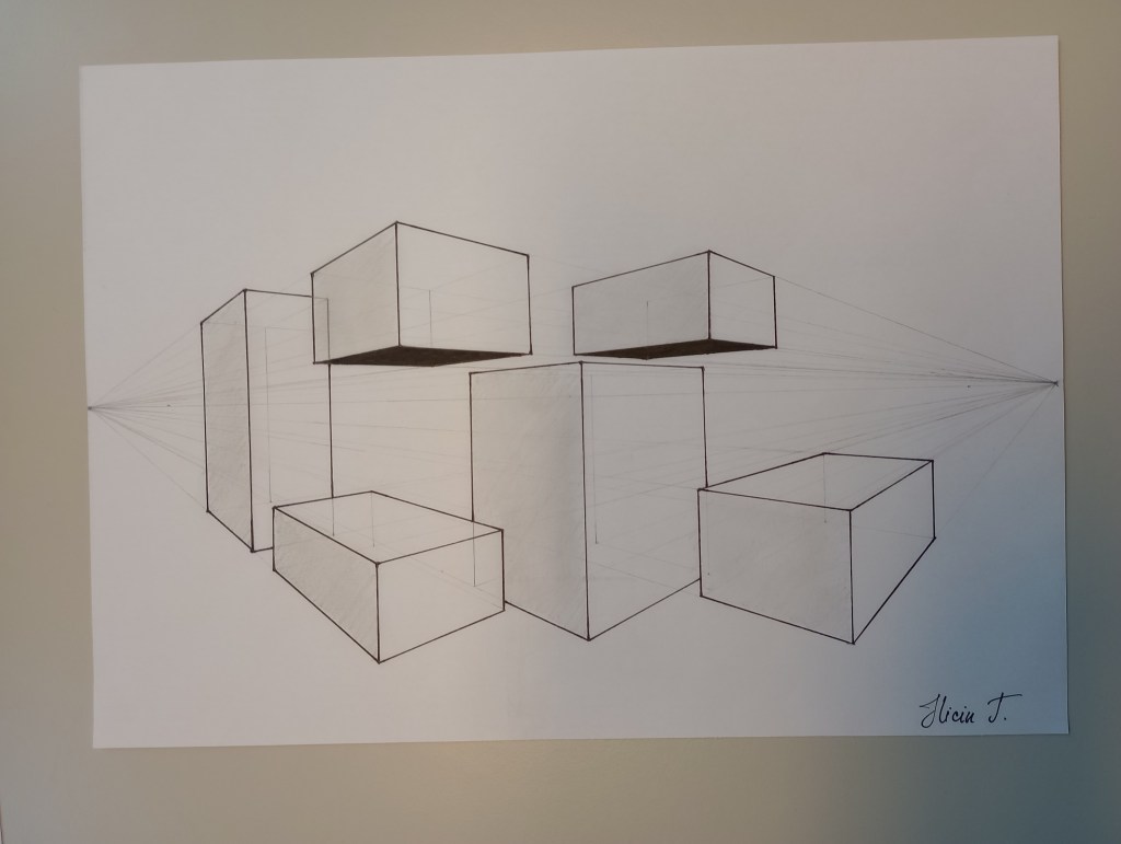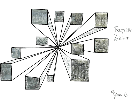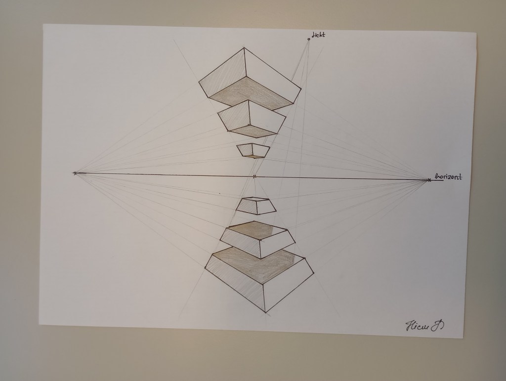 Im Rahmen des Matheunterrichts haben wir uns diesmal mit perspektivischem Zeichnen in der Geometrie beschäftigt. Perspektiven finden wir in vielerlei Formen in Bereichen der Technik, Fotografie, Architektur oder der Kunst wieder.