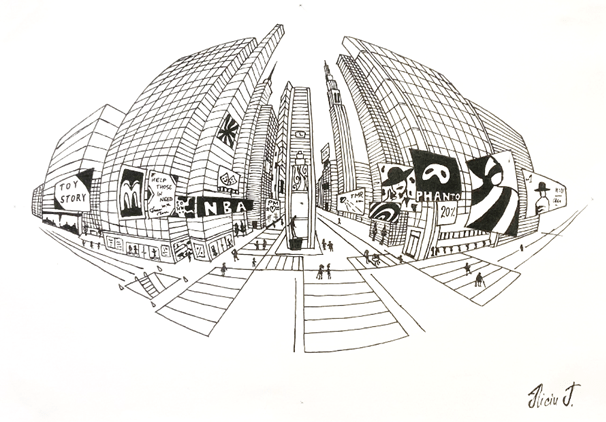 Hier sehen wir eine besondere Technik: Der Fisheye-Effekt, der für fortgeschrittene Zeichner geeignet ist.