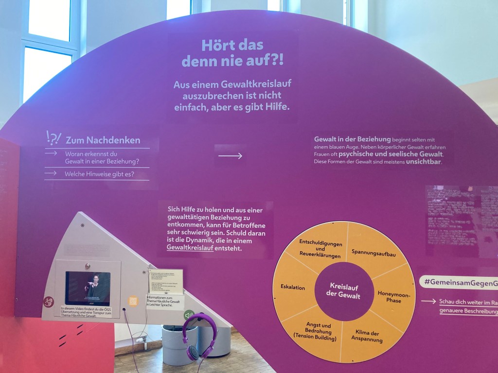 Die Ausstellung „#gemeinsamgegengewalt“ in der Hauptbücherei Wien ist Teil der Initiative im Rahmen der „16 Tage gegen Gewalt an Frauen“. Die Ausstellung präsentiert kreative Beiträge, die darauf abzielen, Bewusstsein für das Thema Gewalt gegen Frauen zu schaffen. Durch vielfältige Medien und Ausdrucksformen setzt die Ausstellung ein Zeichen für Solidarität und den gemeinsamen Kampf gegen Gewalt. Auch ein Informationsstand der autonomen Frauenhäuser Wien wurde durch zwei Mitarbeiterinnen betreut und man konnte sich viele Infomaterial dort holen.