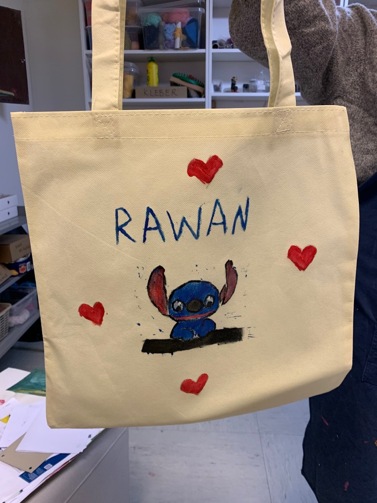 „Nach der Vorstellung des Berufsbilds Drucktechniker:in haben unsere Teilnehmer:innen eigene Taschen mit Linoldruck gestaltet. Jede Tasche wurde mit geschnitzten Motiven bedruckt. Dabei konnten die Teilnehmer:innen ihre künstlerischen Ideen umsetzen. Am Ende entstand eine einzigartige Sammlung handbedruckter Linoldruck-Taschen.“ F. W.-S., Trainerin #futurefactory Innovationswerkstatt