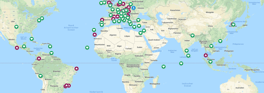 Violett: Orte, an denen wir gelebt/gearbeitet haben