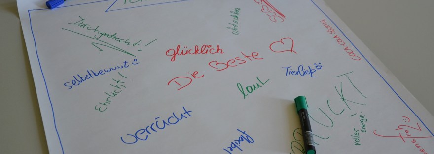 Abgerundet wurde der Workshop mit einem selbst gestalteten Video. Die Teilnehmerinnen haben in diesem Video jeweils den Satz „Ich bin…“ mit einem zuvor erarbeiteten Eigenschaftswort ergänzt. Herausgekommen ist ein bunter Film, der die Vielfalt unserer Teilnehmerinnen präsentiert.