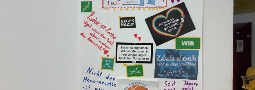 Mit der Wandzeitung wollten wir auf den zunehmenden Trend der Ungleichbehandlung von Menschen sowie auf den erhöhen Trend unterschiedlicher Arten von Diskriminierungen aufmerksam machen.